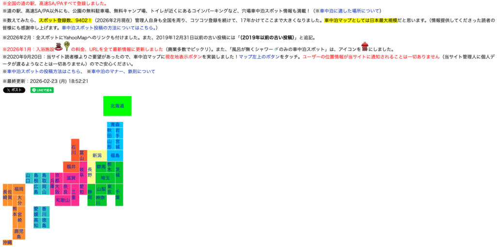 「みんなでつくる車中泊マップ(全国車中泊マップ)」です。
